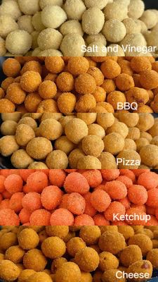 فول سوداني ، دقيق قمح ، نشاء ذرة ، سكر ، مالتو دكسترين ، أعشاب بحرية ، E102 ، E133